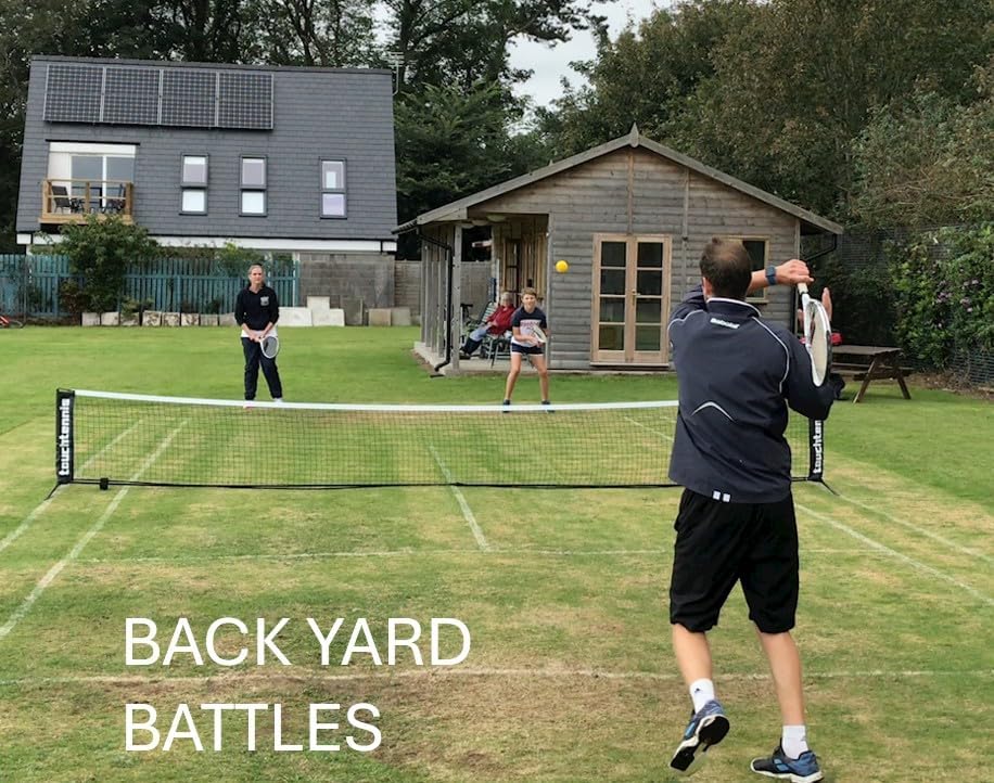 - 1 20' long Official touchtennis net. This is a robust net that can be set up in the back yard, or garden, or driveway, packing lot, or even the beach. Quick set up for playing touctennis anywhere and anytime you want. The net folds up into an easy to carry bag. Take your court anywhere!